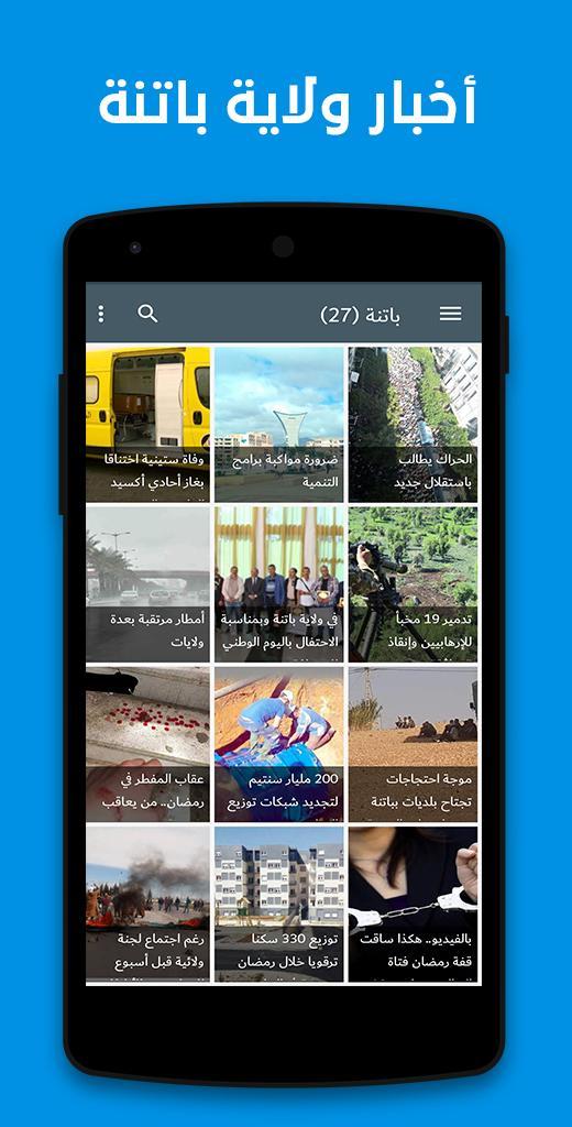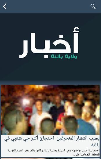 تطبيق يهتم بجميع الأخبار الباتنية و الوطنية بصفة عامة ، يشتمل التطبيق على مجموعة أخبار متنوعة بالصور و الفيديوهات ،مجموعة من الأخبار الثقافية، الإقتصادية و كل ما يتعلق بولاية باتنة.