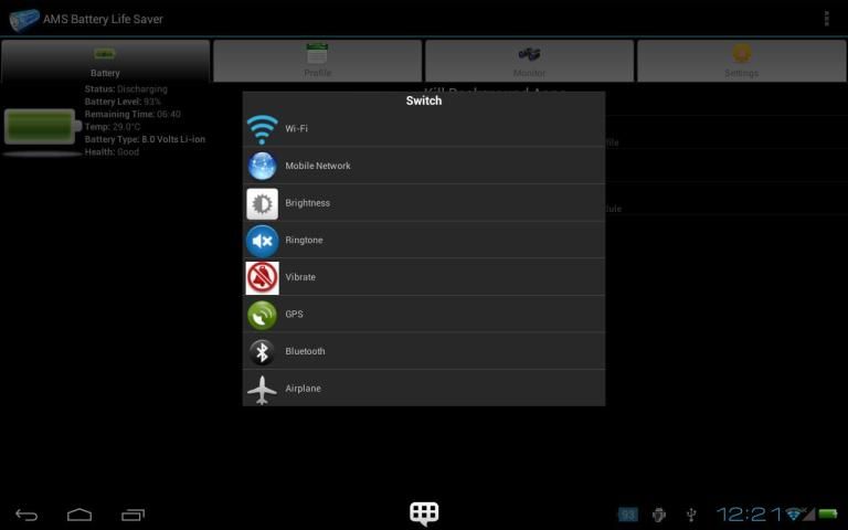 Battery Life Saver comes with built-in battery saving profiles. You can also create your own battery saving profiles. A battery saving profile is a group of settings to switch on/off certain features - all at once.