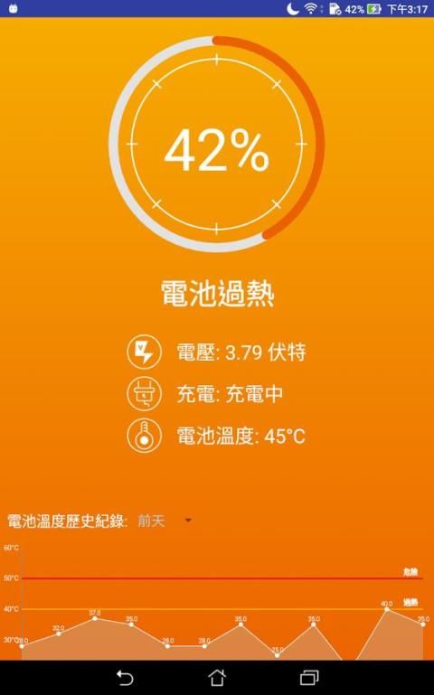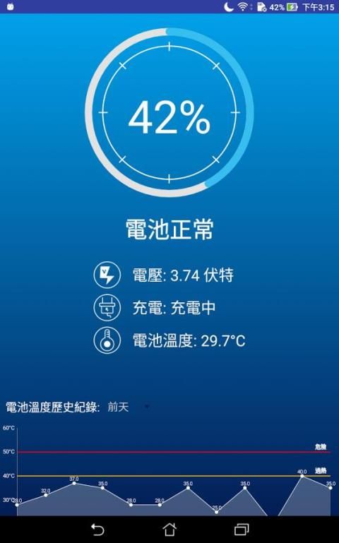 監控電池溫度,顯示當前的電池溫度,記錄設備每日電池溫度,當電池溫度狀態改變時傳送即時訊息通知,電池溫度偏高,電池溫度過高,電池溫 度已 達危險等級.