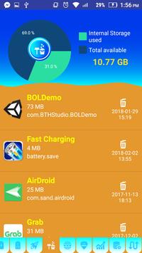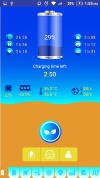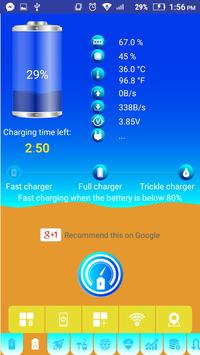 البطارية التوقف - "الشاحن السريع" هو حل فعال لهذه المشكلة. التطبيق يجمع الوظائف الأساسية التالية: