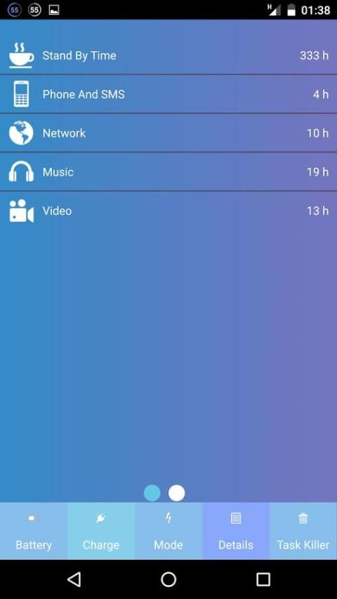 رصد جميع التطبيقات التي تستنزف الطاقة في حين لا تكون قيد الاستعمال وتذكير المستخدم عن التطبيقات استهلاك عالية. مراقبة جميع التطبيقات قيد التشغيل "استهلاك الطاقة وقائمة لك التفاصيل لمدير التطبيق، والتفاصيل البطارية، يدل بوضوح على وضع عمر البطارية.