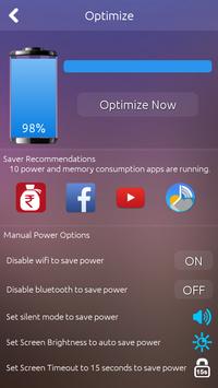 - Fast Battery Saver: Instantly find and solve battery problems with the “Optimize” button.