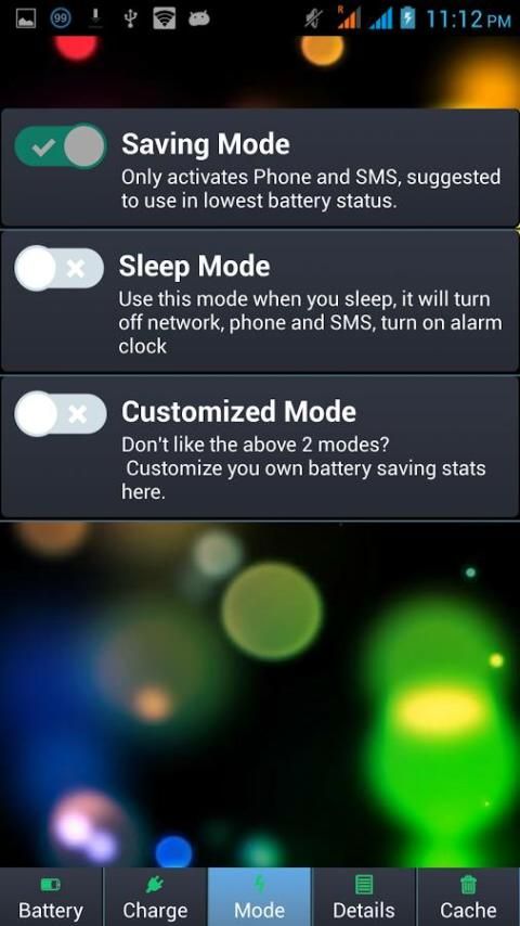 This app had made available 2 pre set mode ie Saving Mode & Sleep Mode, if none of these two suits your usage, you have a option to customize your own mode.