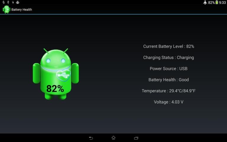 الصحة بطارية - المعرض الحالي مستوى البطارية، والشحن مستوى ودرجة الحرارة والجهد.