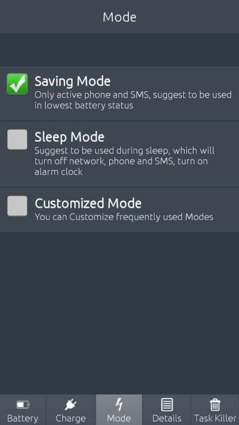 العديد من وسائل الشحن: البطارية طبيب يعطي وسائط 2، بما في ذلك وضع سوبر التوقف ووضع السكون. يمكنك اختيار وضع أو العرف لتحسين التحميل من جهاز الروبوت الخاص بك.
