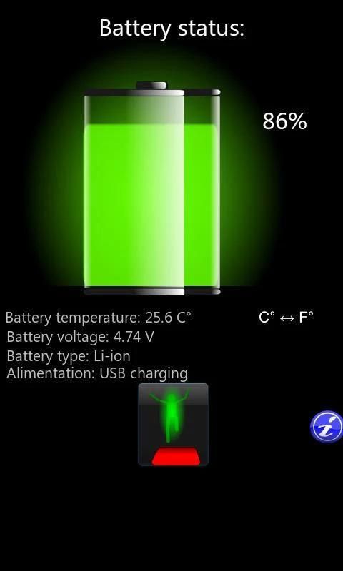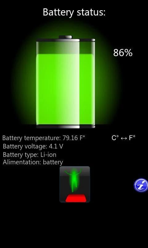 من خلال هذا التطبيق يمكنك معرفة معلومات مثيرة للاهتمام حول وضع مستوى شحن البطارية، ودرجة الحرارة، والجهد ونوع البطارية في الاستخدام.
