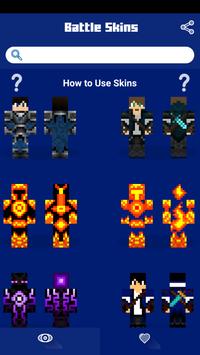 Battle Skins for Minecraft PE FreeMCPE (Pocket Edition) & PC Skin allows you to choose and apply a custom skin to your Minecraft character for free with just the touch of a button! You can find your favorite Battle Skin here ! There are over tons of skins to choose from, with more being added every day! You can try your Skins on all types of maps : Survival Maps , Adventure Maps , Creative Maps , Parkour Maps , Red Stone Maps and all other that you want! They even work with the best mods for minecraft pe - like: Lucky block mod , Fly Mod , Pixelmon mod , herobrine mod and all other mods that you like.