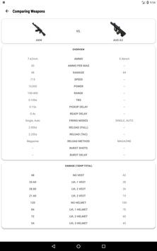 Over 60 weapons stats for almost every weapon, you will know everything there is to know! You can also view how much damage each weapon does to different body parts and how many hits it takes to kill!
