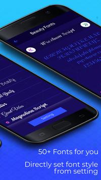 Beauty Font Style is a unique font manager for android devices. Handwriting Font Style provide number of stylish fonts, funny, cool, cute, Handwriting etc.. Handwriting Font Style easy to use, preview the fonts details,and download and use it, then all system fonts will be changed.Handwriting Font Style is easy to change system font. use,enjoy & share via social networking.