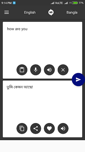 # البنغالية إلى الإنجليزية الترجمة والترجمة الإنجليزية إلى البنغالية هي أقوى أداة ترجمة على جهاز Android. ترجمة أي جملة أو عبارة في أي لغة وجهة، والاستمتاع بمجموعة من ميزات الوظيفة الإضافية المفيدة مثل تحويل النص إلى كلام، ودعم الوسائط الاجتماعية المتكاملة.