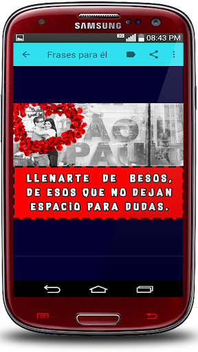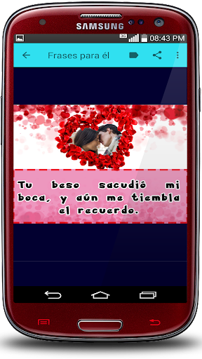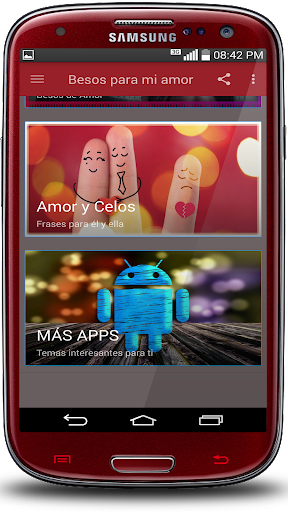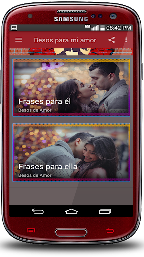 هذا هو السبب في أننا صممنا تطبيقنا الرومانسي "عبارات قبلاتي حبي" مجاني وقد أنشأته لجميع أجهزة Android (الهواتف المحمولة والأجهزة اللوحية)، بمجرد تثبيتها ليست كذلك من الضروري أن تكون متصلا بالإنترنت وأن تكون خفيفا جدا يمكنك مشاركتها بسرعة من خلال شبكاتك الاجتماعية المفضلة لديك، غرف الدردشة، رسالة نصية أو بريد إلكتروني. يقبل عبارات حبي "يتكون من معرض جميل من صور التصوير الفوتوغرافي الرومانسية للغاية، يتم اختيار الأموال بعناية بالنسبة لك، لتحقيق التأثير المرغوب ... الوقوع، وهي مقسمة إلى نشاطين: