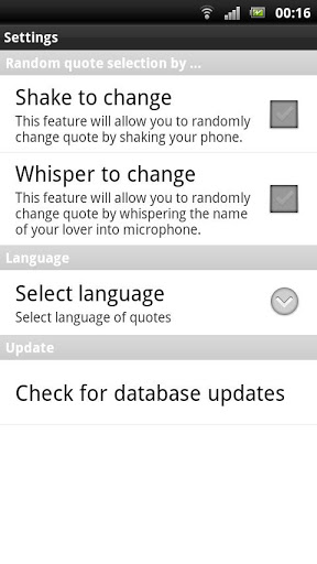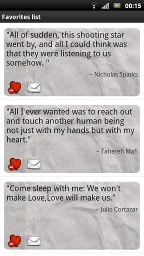 ”All you need is love. But a little chocolate now and then doesn’t hurt.” - Charles M. SchulzThis is a collection of more than 1000 love quotes from over 30 great minds.Use them to share your feelings with your partner and you'll be surprised how much love you will get back.What you can do with this romantic app?+ You can share love quotes via all possible communication services (sms, facebook email Whats App etc...).+ If you like any of quotes, you can add them to the list of your favorite ones.+ You have the opportunity to randomly select love quotes by shaking the phone.+ You can also select random romantic quotes using voice command.What you need to do now is:1. Click on "INSTALL" button at the top of this page, wait until application is installed.2. Go to your device Home Screen, touch and hold your finger down on a Home Screen while list with options will appear.3. Touch Widgets from the list of choices.4. Scroll through your list of installed widgets and select "Best Love Quotes" widget to add to your Home screen.5. Enjoy the application.To activate "Shake to change" or "Whisper to change" features you need to do the following:1. Press the i icon on the right bottom of the widget. Settings menu will appear.2. Tick the box in front of desirable feature and press back to close settings menu.3. Now shake your smartphone or whisper the name of your lover, the next love quote will be displayed.New Love Quotes will be added weekly to the database And also would be great to hear your opinion about this app in "comments" section as it will be expended particularly according to your ideas and wishes.Tags: Valentine, Valentine's Day, love, quotes, love quotes, inspiring, love poems.
