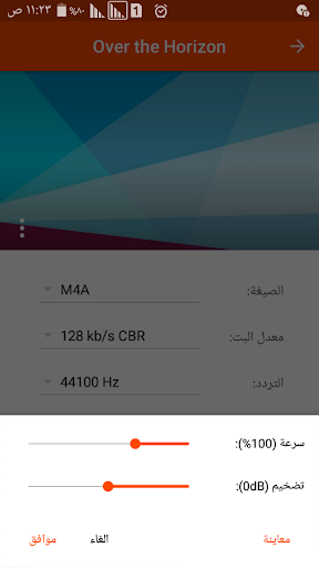 ● تغيير إعدادات الصوت مثل معدل البت و التردد و القناة.