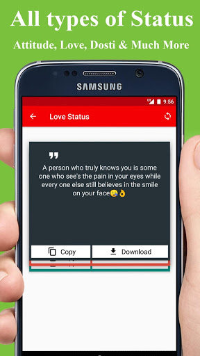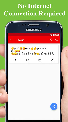 يمكنك تنزيل أحدث حالة باللغة الهندية والإنجليزية من قاعدة بيانات عبر الإنترنت وقراءة الحالة في وقت لاحق. Best Status 2021 هو تطبيق غير متصل تحديثات تلقائيا عند توصيل الإنترنت.