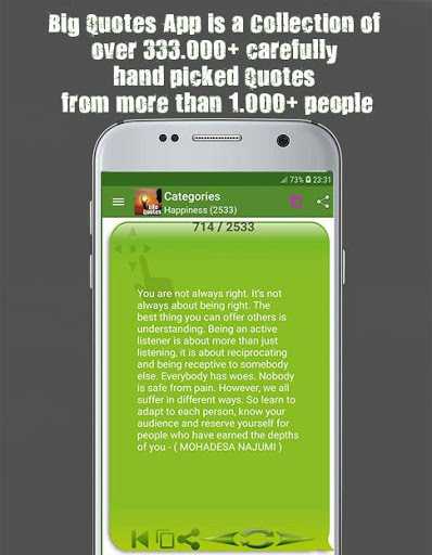 Big Quotes App is a Collection of over 333.000 carefully hand picked Quotes from more than 1.000 people