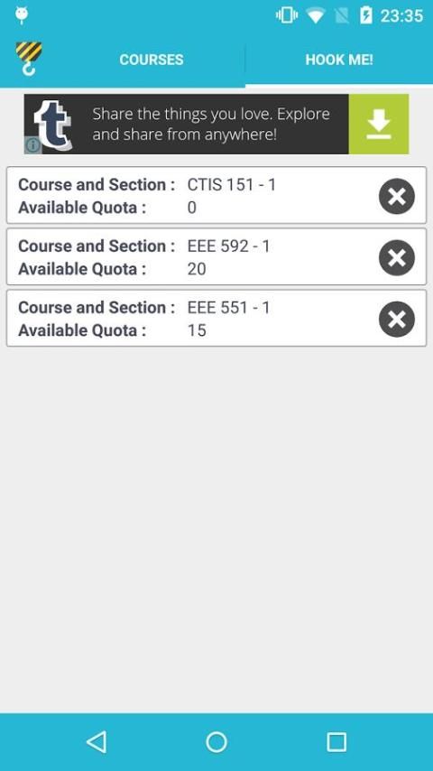 Quota Hook does all of these for you, apart from registering to the course. Every other processes which you have to do within the Registration period, Quota Hook does it for you. You just add your desired course to "Hook Me!" list, and Quota Hook will notify you when there is an opening! Only thing you have to do is register to that course when you are notified by Quota Hook!
