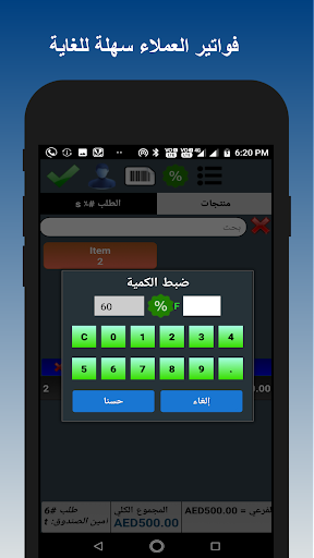 ✓ فاتورة الباركود: استخدم الكاميرا كماسح الباركود الخاص بك أو قم بتمكين جهاز مسح الباركود الخارجي وتمكّن من إعداد الفواتير بشكل أسرع باستخدام الرمز الشريطي.