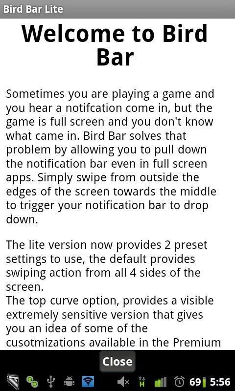 الآن يمكنك التحقق من الإخطارات الخاصة بك حتى عندما كنت تلعب لعبة ملء الشاشة! شريط الطيور، كل ما عليك القيام به هو انتقاد من على حافة الشاشة على الشاشة. انها نوع من مثل تقومون به بالفعل، إلا أنك لا تحتاج إلى مشاهدة شريط الإخطار أو شريط الحالة للقيام بذلك، وأنه يعمل من أي جانب من الشاشة!