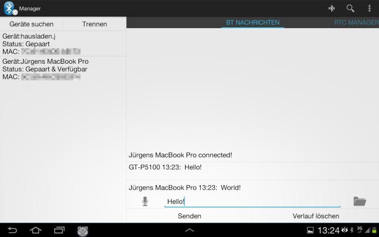 يوفر بلوتوث SPP مدير القدرة على الاتصال أجهزة Bluetooth للبناء. لهذا الغرض يتم استخدام بروتوكول RFCOMM، والذي يعرف أيضا تحت اسم المسلسل بروتوكول بورت (SPP). تتم قراءة جميع أنواع العقارات المحيطة والأجهزة المتصلة وترسل معهم. ويوفر التطبيق أيضا القدرة على بدء الخادم وقبول الاتصالات الواردة من الأجهزة الأخرى. وعلاوة على ذلك أنه يحتوي على التطبيق المدمج في ريال مدير مدار الساعة من الزمن. وهذا يمكن أن ترسل ولان التيار أو وقت محدد مسبقا على الجهاز المحدد استخدامها لتهيئة RTC للمتحكم. الذين الوقت قد مثلا سوف يتحول الناتج على LCD.
