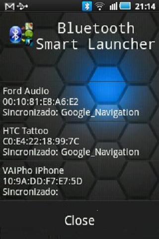 "bluetooth Smart Launcher" allows to start automaticallythe app you want when your smartphone connects with the Bluetooth device.This is useful to automate aplications, the categories are:CAR apps-google navigation Sygic, Waze, Torque, Flitsmeister, Car Home, Car Home Ultra, iCoyote, navFree, Route66, TomTom Places.training for sport apps:-Endomondo, Runtastic, nike, iMapMyRun, runkeeper.MUSIC apps:-Spotify, TuneIn Radio, Pandora, PCRadio, Google Play Music, Poweramp Music Player.You can also select the App that you want, you only need to have it installed in your smartphone.This app is under development, if you find any error, please, send an email to administrador@vaipho.comYou also can connect in twitter @vaiphoThe list of pre-selected apps to start with bluetooth are: Google Navigation, Sygic, Waze, Torque, Flitsmeister, Car Home, Car Home Ultra, iCoyote, navFree, Route66, TomTom Places, Endomondo, Runtastic, nike, iMapMyRun, runkeeper, Spotify, TuneIn Radio, Pandora, PCRadio, Google Play Music, Poweramp Music Player.