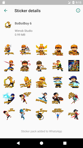 Immediately download the Best Boboiboy Sticker for WAStickerApps application and share the stickers with your friends.