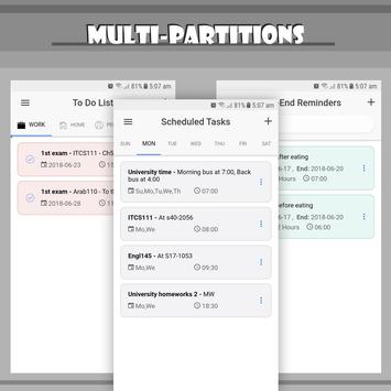 - Scheduled tasks : لعرض المهام الروتونية (الاسبوعية) مثل اوقات الاستحمام ، اوقات الدراسة ، أوقات الراحة و المتعة مع العائلة و الخ