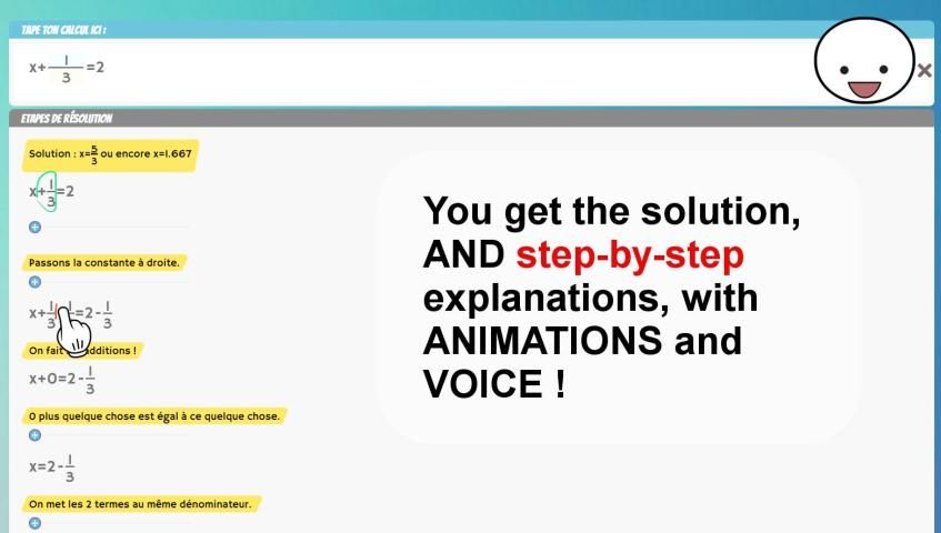 هل لديك معادلة لحل؟ سيشهد سوق الرياضيات تعطي لك على الفور الحل، مع كل من مراحل المشاركة!