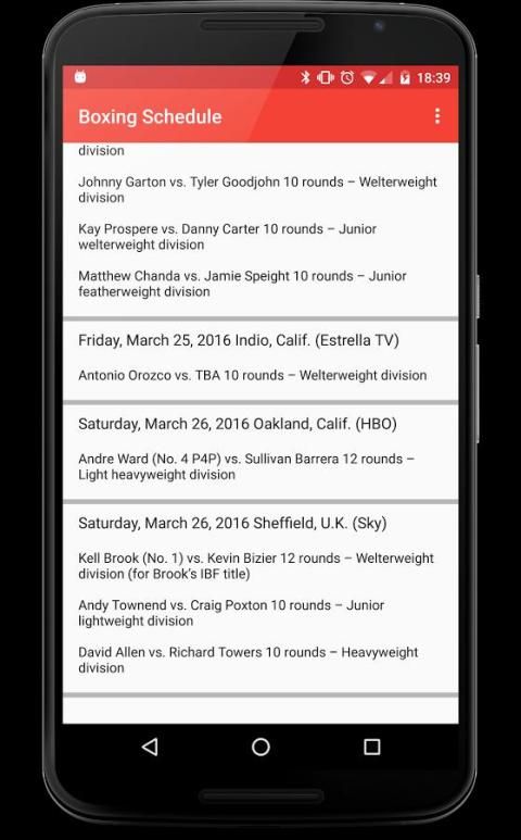 طريقة سريعة وسهلة لعرض معارك الملاكمة القادم / الجدول الزمني.