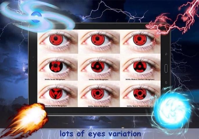 - اوتشيها الشارينقان إلى العين الخاصة بك ومشاركتها مع العائلة والأصدقاء. الآن يمكنك اختيار نمط الشارينقان أكثر من واحد مثل Mangekyo، Byakugan، Rinnegan.