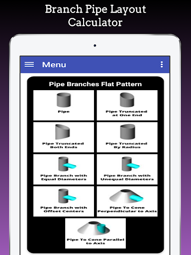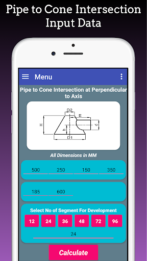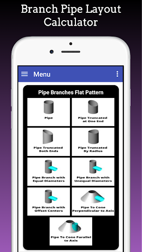 Branch Pipe Layout App build to Get Flat Pattern Layout or Fabrication Layout for Plain Pipe or Shell, Pipe to Pipe Intersection at 90 Deg with Equal Diameter, Pipe to Pipe Intersection at 90 Deg. with unequal Diameter with offset distance, Pipe or Nozzle to Cone Intersection at 90 Deg or Pipe or Nozzle to Cone Intersection with Parallel Axis.