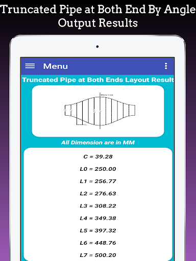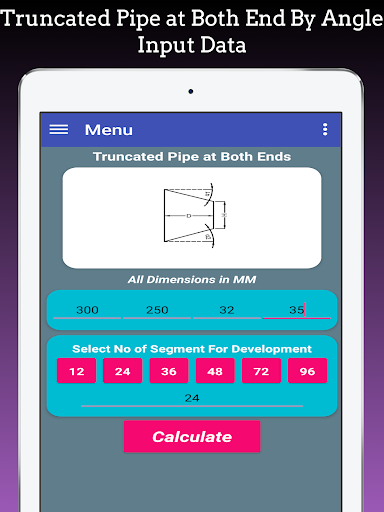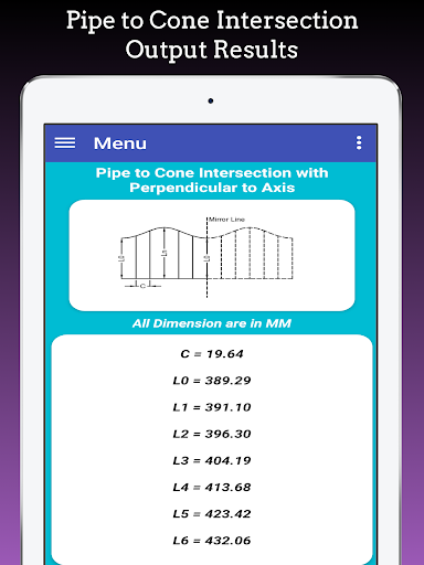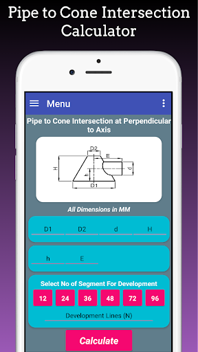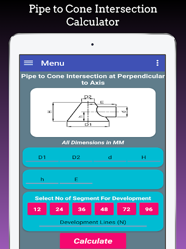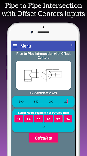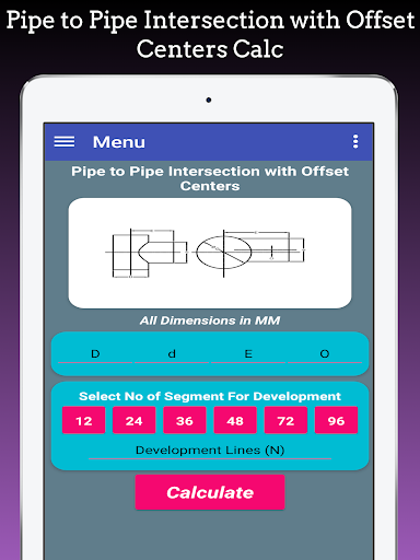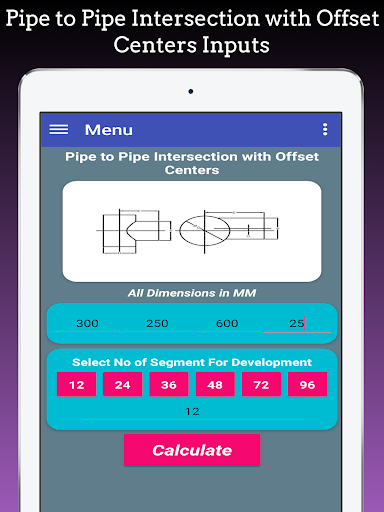 This app is also used to Layout Branch pipe to Pipe, Pipe Branch Cutting, Pipe tee Branch, Pipe Y Formation and it based on Pipe branch Cutting formula.