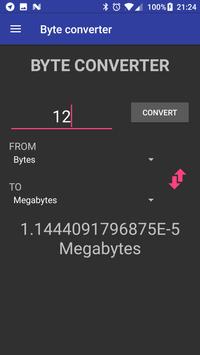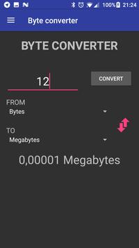 byteconverter هو تطبيق بسيط لتحويل كيلوبايت إلى ميغابايت، على سبيل المثال.يدعم البايتات، كيلوبايت، ميغابايت، غيغابايت و Terabytes