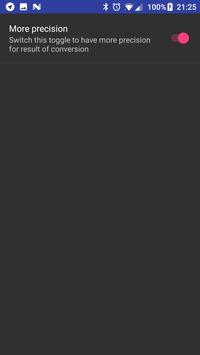 غالبا ما تتطلب التحويلات الكثير من الرقم العشري لعرض تحويل مقبول، لذلك في الإعدادات هناك خيار لزيادة دقة التحويل