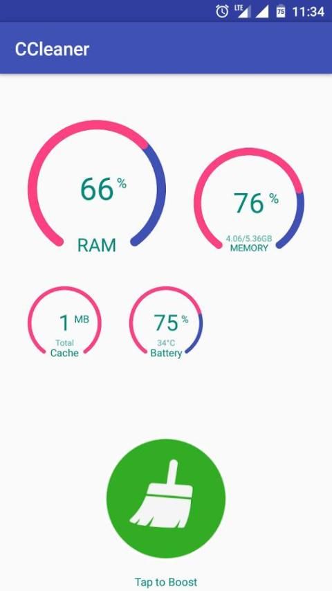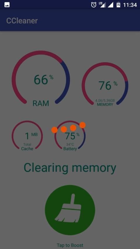 - One tap to clean cache and RAM