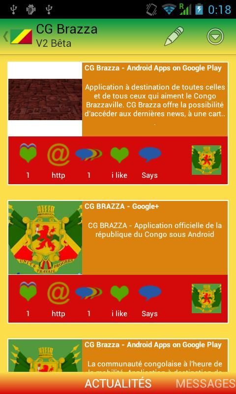 تطبيق تستهدف جميع تلك وجميع أولئك الذين يحبون الكونغو برازافيل. CG برازا يتيح الفرصة للوصول إلى أحدث الأخبار وخريطة تفاعلية للبلد، وتوقعات الطقس لمدن كبرى، والألعاب المصممة خصيصا للمستخدمين والمستخدمين التطبيق وأشياء أخرى كثيرة التي يسرني اكتشاف تركيب CG برازا.