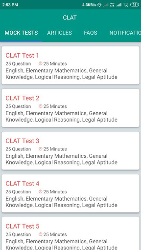 The highlight of this CLAT app is its features like Prep - Tests. The App consists of over 10,000 questions covering sections like
