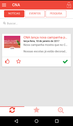 Além disso, o aplicativo CNA Idiomas tem uma área de “Acesso Restrito” para colaboradores e franqueados das escolas de todo o Brasil. Com o mesmo login e senha do Portal Corporativo, é possível acessar conteúdos exclusivos, notícias da rede, acompanhar a programação de eventos e muito mais. Você também pode avaliar os conteúdos (“curtir”) e receber notificações das mensagens mais importantes.