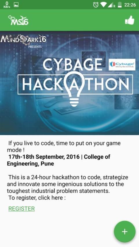 App for the tenth edition of MindSpark, national level technical fest of College of Engineering, Pune