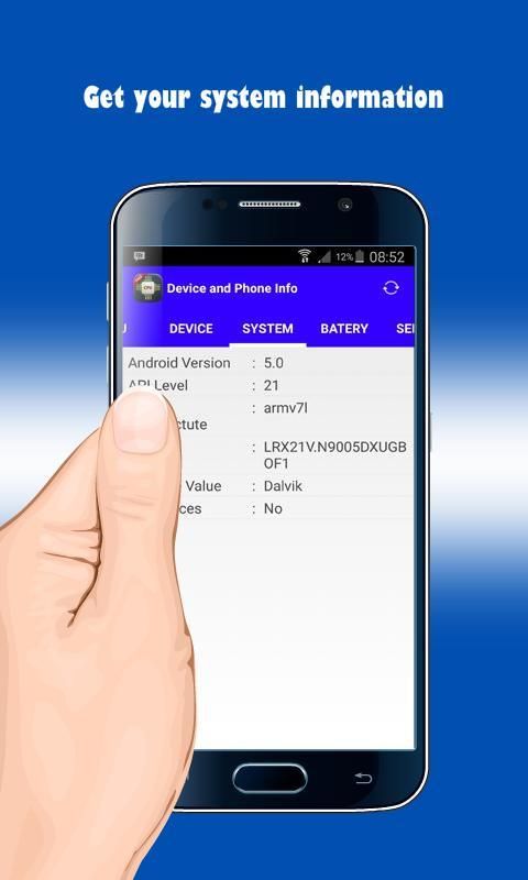 تطبيق مجاني ويمكن تحميلها من قبل أي شخص. هذا التطبيق يجعل من السهل وتساعدك على الحصول على معلومات مثل مواصفات مثل وحدة المعالجة المركزية، والضرب، وأجهزة الاستشعار، IMEI، جهاز، نظام، الخ