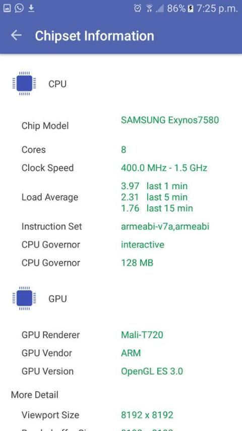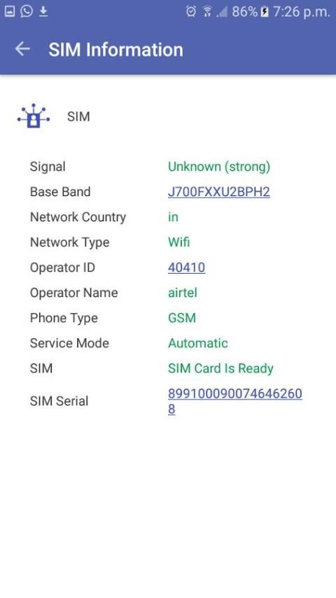 وهذا التطبيق يظهر استكمال المعلومات التقنية حول الهاتف الذكي الخاص بك.