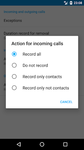 - الإعدادات الفردية للوصول إلى الصادرة & quot ؛ حفظ الكل & quot ؛ ، quot ؛ لا تكتب & quot ؛ اتصالات الحبل فقط & quot ؛ ، & quot ؛ تسجيل جهات الاتصال ليس فقط & quot ؛ (فقط في الإصدار الكامل)