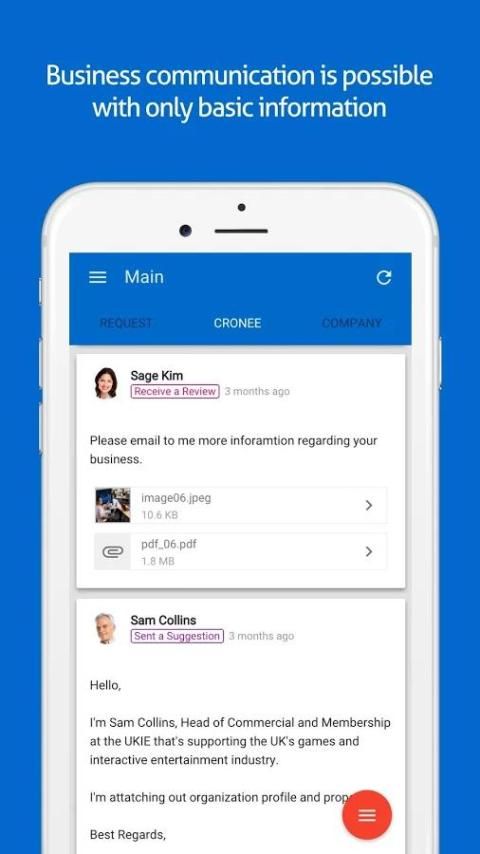 All of your business networking, CRONEE will guide you into the world of clean and smart business networking. Let's download it and experience the new world of the smart business networking service.