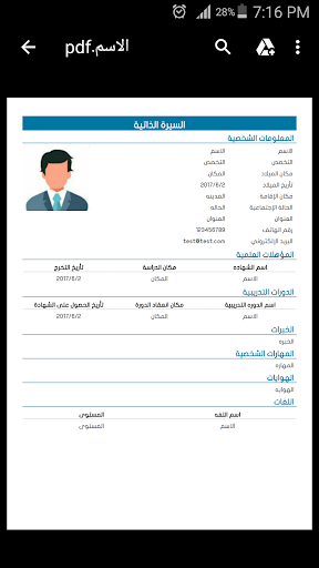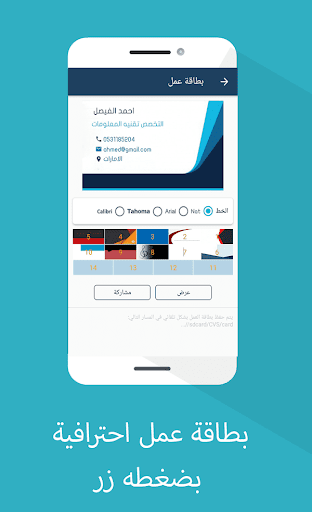 إنشاء سيرتك الذاتية وبطاقة العمل الخاصة بك في جهازك ومشاركتها مع الكثير من القوالب الجاهزة.