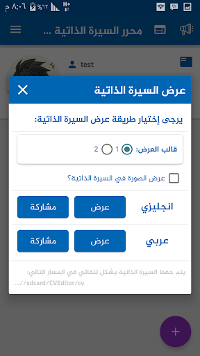 برنامج يقوم بإنشاء سيرة ذاتية سريعه والتحكم بمحتواها وحفظها وتعديلها ومشاركتها أيضا عمل بطاقة عمل سريعة بعدة أشكال مختلفه ومشاركتها