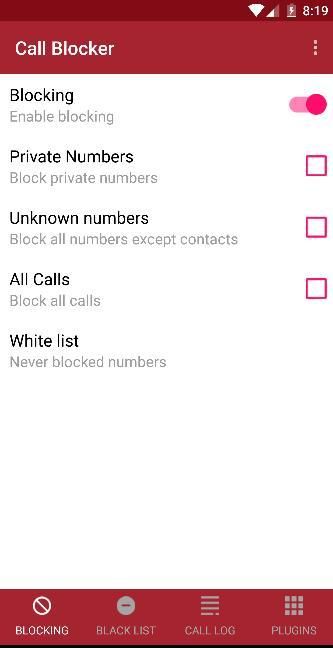 باستخدام خيارات علامة التبويب هذه، يمكنك منع المكالمات من أرقام خاصة، غير معروفة أو جميعها. أيضا، يمكنك تشغيل / إيقاف حجب بنقرة واحدة بسيطة.