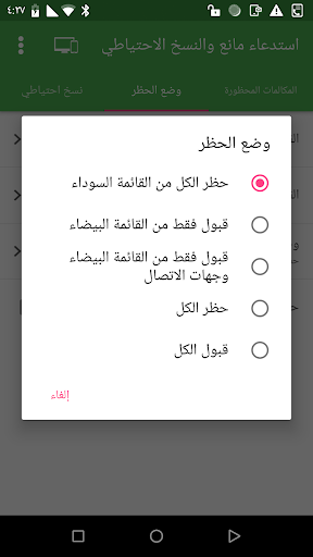 - منع المكالمات الواردة غير المرغوب فيها