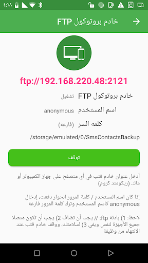- دعم خادم FTP لنقل الملفات الاحتياطية