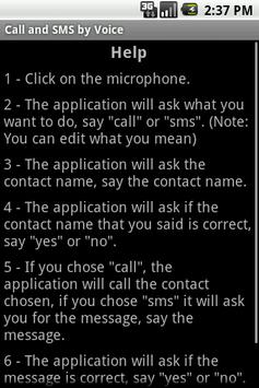 2 - The application will ask what you want to do, say "call" or "sms". (Note: You can edit what you mean)