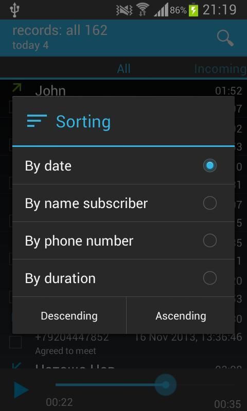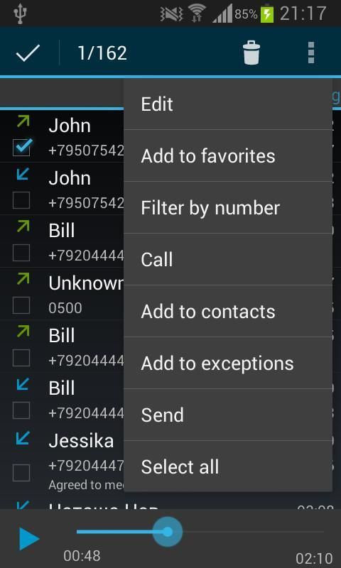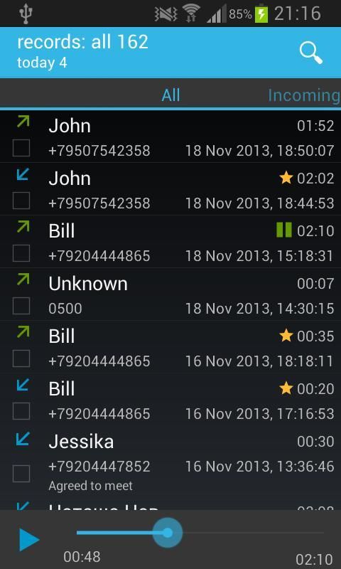 - لا يمكن حفظ المحادثات استمرت اقل من N- ثانية (فقط في النسخة الكاملة)