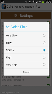 we keep many times the mobile in the pocket or bag Free caller name Announcer will speak the number of the incoming calls or contact name without looking into your device and even the number is not save in your contact lists, It is uses Text to Speech library of device.this application helps a lot for those people who are busy or at work.